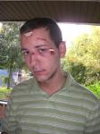 ca c est richard qui fait semblant de se battre avec des suporters marseillais ,et qui en fait c est pris un coup de boule du tarmac depuis il croit qu il peut rentrer ds les stades avec des cartes vitales ..... |